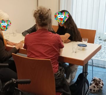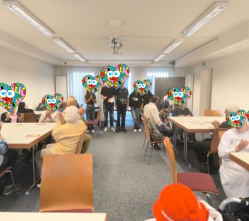 Seit über 10 Jahren hat unsere Schule in Zusammenarbeit mit der Jugendhilfe eine Kooperation mit dem nur wenige 100 m gelegenen Seniorenzentrum Franziska Schervier. Gemeinsam mit den inklusiv beschulten Schülerinnen und Schülern besuchen wir die Bewohnerinnen und Bewohner regelmäßig. Was damals als kleines Projekt begonnen hatte, ist nun ein fester Bestandteil der Berufsorientierung, der im Stundenplan fest verankert ist. Mit den Schülerinnen und Schülern werden gemeinsam Sachen in der Schule vorbereitet. So machen wir zusammen Sport, spielen Gesellschaftsspiele und basteln für verschiedene jahreszeitliche Anlässe. Ungefähr einmal im Monat besuchen wir dann die Seniorinnen und Senioren. Es ist eine wunderbare Kooperation, von der alle Seiten profitieren. Der Austausch zwischen Alt und Jung ist immer sehr lebhaft und eine Bereicherung für alle Beteiligten!