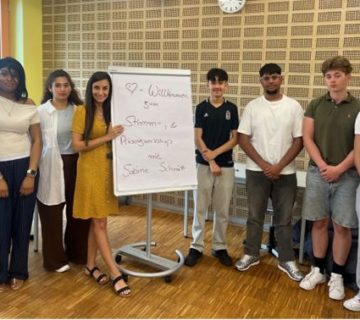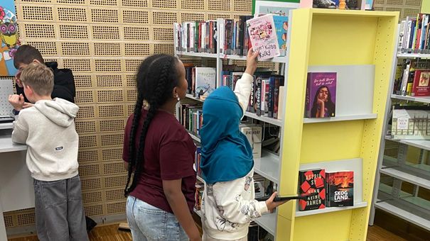 Die Schulbibliothek der Ludwig-Börne-Schule ist für Schülerinnen und Schüler ein wichtiger Sozial- und Kommunikationsraum. Im Schulalltag bietet sie sich als multimedialen Lernort an. Frau Kirche von der Schulbibliothekarischen Arbeitsstelle empfing die Klasse 5a mit ihrer Deutschlehrerin Frau Yildirim und klärte die ersten wichtigen Fragen und Impulse rund um unsere Schulbücherei. Den Schülerinnen und Schülern wurden der Zusammenhang mit der Stadtbücherei Frankfurt verdeutlicht, der Unterschied zwischen einer Bibliothek und einer Buchhandlung erklärt und Verhaltensregeln erläutert. Mit Hilfe von Actionbounds erkundeten die Jungen und Mädchen digital den Bestand und wurden zur eigenständigen Erforschung der Medien- und Bibliotheksangebote angeregt. Besonders interessant war die Erkenntnis, dass die Schulbibliothek der Ludwig-Börne-Schule über 2000 Bücher besitzt. Mit Spiel und Spaß wurde die Medien- und Informationskompetenz der Schülerinnen und Schüler erweitert. Dies zeigte sich auch beim anschließenden gemeinsamen Ausleihen der neusten Kinder- und Jugendliteratur. Ein herzliches Dankeschön an Frau Kirche für die liebevolle und kompetente Einführung der 5a in unsere Schulbibliothek.