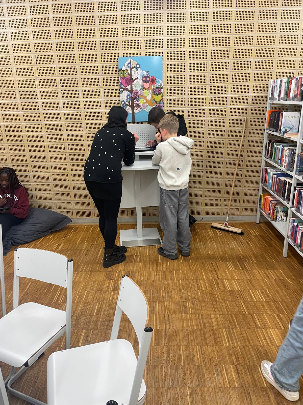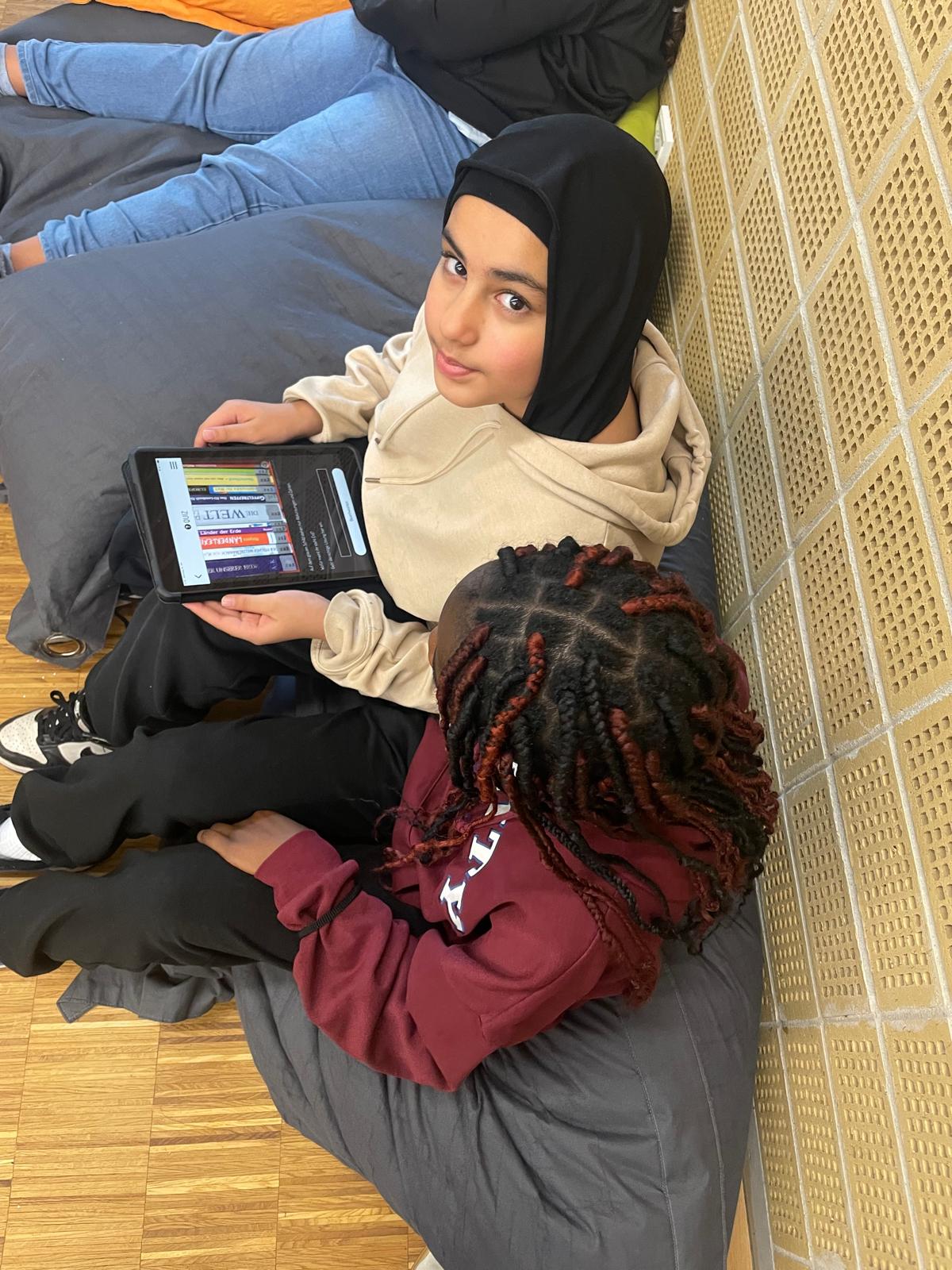 Die Schulbibliothek der Ludwig-Börne-Schule ist für Schülerinnen und Schüler ein wichtiger Sozial- und Kommunikationsraum. Im Schulalltag bietet sie sich als multimedialen Lernort an. Frau Kirche von der Schulbibliothekarischen Arbeitsstelle empfing die Klasse 5a mit ihrer Deutschlehrerin Frau Yildirim und klärte die ersten wichtigen Fragen und Impulse rund um unsere Schulbücherei. Den Schülerinnen und Schülern wurden der Zusammenhang mit der Stadtbücherei Frankfurt verdeutlicht, der Unterschied zwischen einer Bibliothek und einer Buchhandlung erklärt und Verhaltensregeln erläutert. Mit Hilfe von Actionbounds erkundeten die Jungen und Mädchen digital den Bestand und wurden zur eigenständigen Erforschung der Medien- und Bibliotheksangebote angeregt. Besonders interessant war die Erkenntnis, dass die Schulbibliothek der Ludwig-Börne-Schule über 2000 Bücher besitzt. Mit Spiel und Spaß wurde die Medien- und Informationskompetenz der Schülerinnen und Schüler erweitert. Dies zeigte sich auch beim anschließenden gemeinsamen Ausleihen der neusten Kinder- und Jugendliteratur. Ein herzliches Dankeschön an Frau Kirche für die liebevolle und kompetente Einführung der 5a in unsere Schulbibliothek.